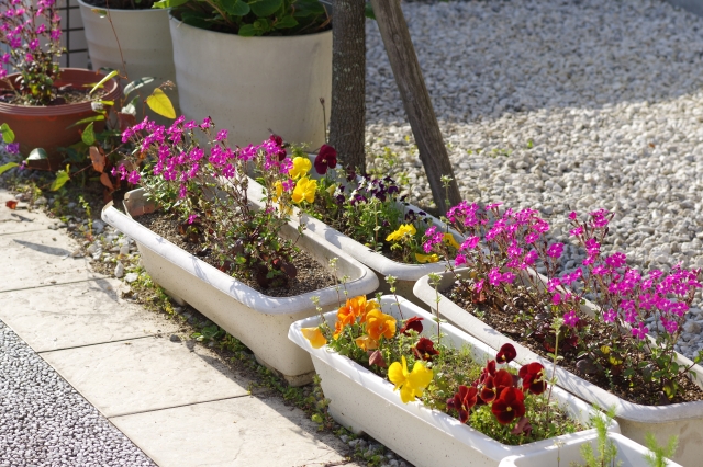 色とりどりの花が目を楽しませてくれるだけでなく、プランターがあるだけで物理的に中に入りづらくなります。