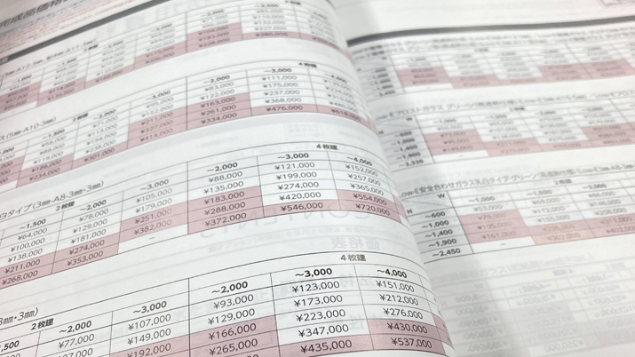 実際のところ、内窓は各窓に合わせたオーダーメイドになるんですが、大きさとガラスの種類でなんとなくのイメージをつかむことはできますね。