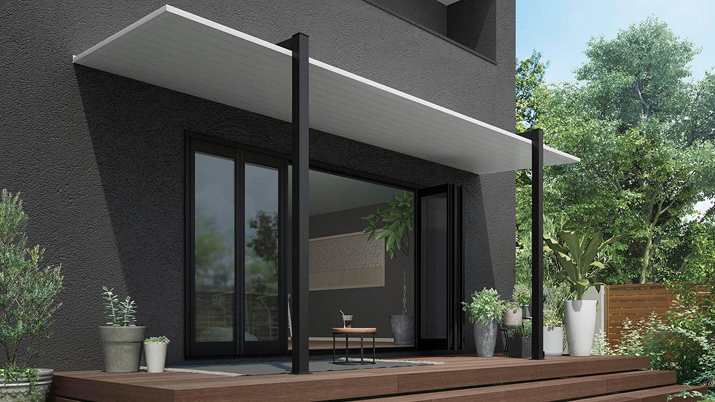 ウッドデッキと合わせて、屋根を付けたいというお話もよく聞きますが、屋根にもおしゃれさを求めている時にこんなスタイリッシュなテラス屋根があると助かりますね。