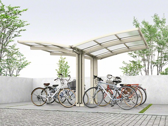 自転車置き場の雨よけ・日よけ「サイクルポート」。オフィスや集合住宅など収容台数が多い場所に設置するなら、サイクルポートを複数組み合わせた合掌タイプや大型の連棟タイプを選びましょう。サイクルポートがあると快適になるだけでなく、自転車が一か所にまとまるので外観もすっきり整頓された印象になりますよ。