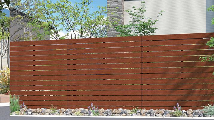 新商品【ユニットフェンス プレフェンスK1型】は「現場組立 マイティウッド ベーシック極」がユニットパネルとなったフェンスで、天然木のような質感と触り心地が特徴です。
