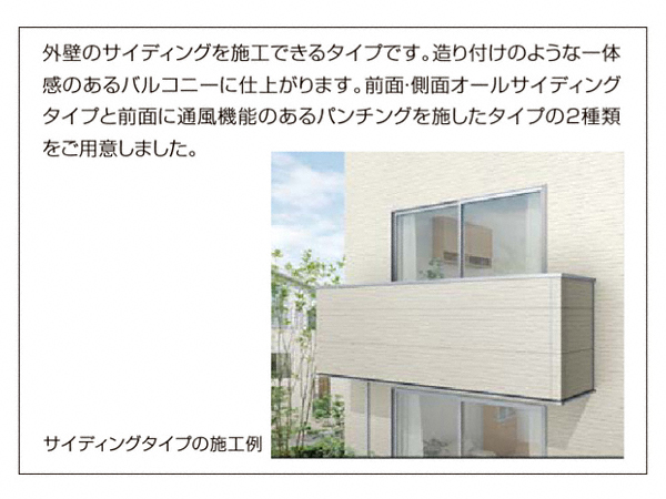 ビューステージSスタイル 柱建て式 サイディング/パンチング 単体は2本の柱を用いるバルコニーです。出幅方向と間口方向への雨水処理ができるSスタイルは排水口の改良によって掃除が簡単に。また、横樋・前桁の一体化でデザイン性もアップ。豊富な面材・床材が揃っています。
