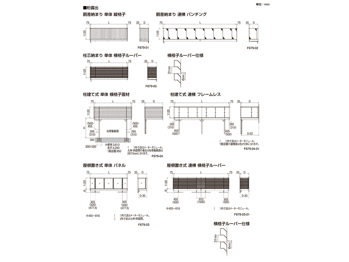 規格間口 | 1,820(関東間1.0間)mm / 2,000(メーター)mm / 2,730(関東間1.5間)mm / 3,000(メーター)mm / 3,640(関東間2.0間)mm / 4,000(メーター)mm |