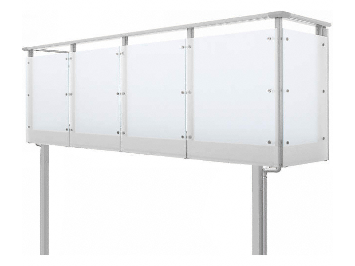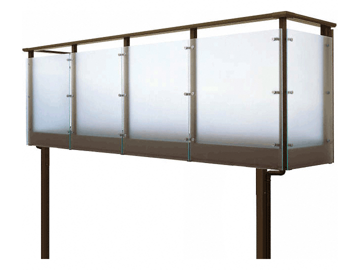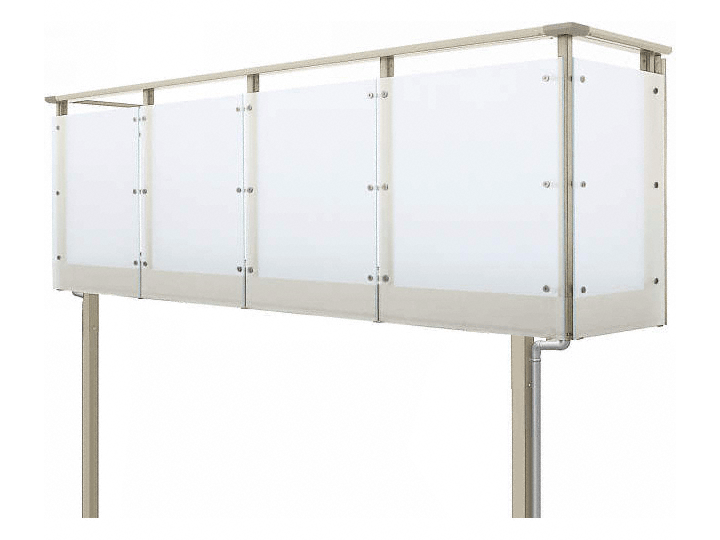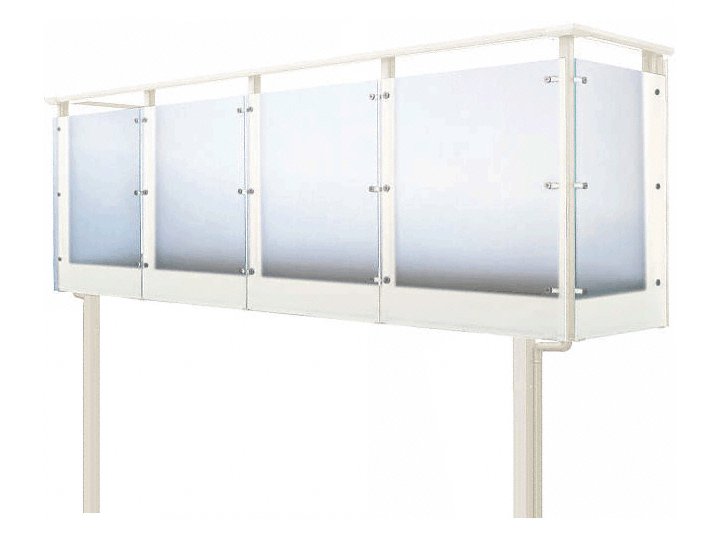 高級感のある厚さ8mmの、ガラスカラーのアクリルパネルを採用。外観を格調高く演出しながら、軽快で開放感のある空間をつくりだします。5カラーをご用意しておりますので、外観の雰囲気に合わせてお選び頂けます!連棟 柱建て式タイプ。