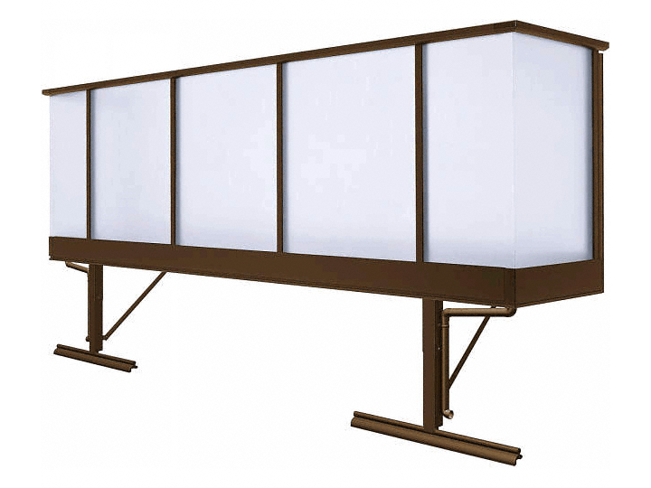 外壁をシンプルに爽やかに演出してくれるデザイン!プライバシーの保護も実現した、すりガラス調のパネル材は[クリアマット]、[スモークブラウン]の2カラーよりお選びください。連棟 屋根置き式タイプ。