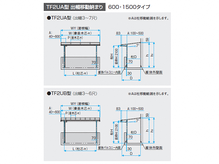 | 柱タイプ | 出幅自在桁タイプ(柱2本) |