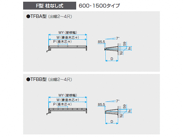 | 柱タイプ | 柱無しタイプ |