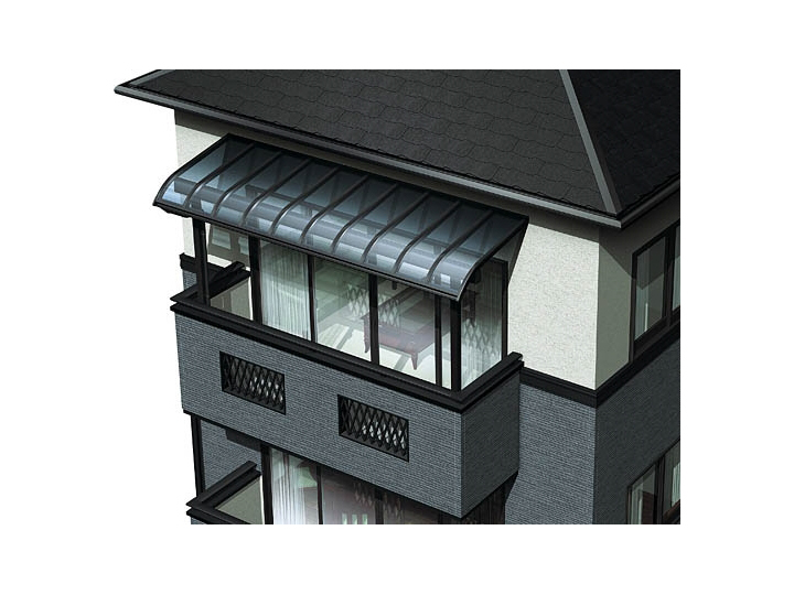 積雪〜50cmまで対応可能なハイクラスなバルコニー屋根。優しいアールラインがお住まいに安らぎ空間を演出。物干しは別途オプションとなります。