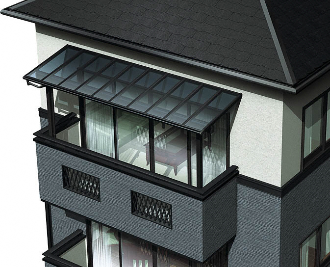 ハイクラスなバルコニー屋根。加工性に優れたシンプルフラットライン。間口方向に柱の移動が最大500mm可能!*物干しは別途オプションとなります。