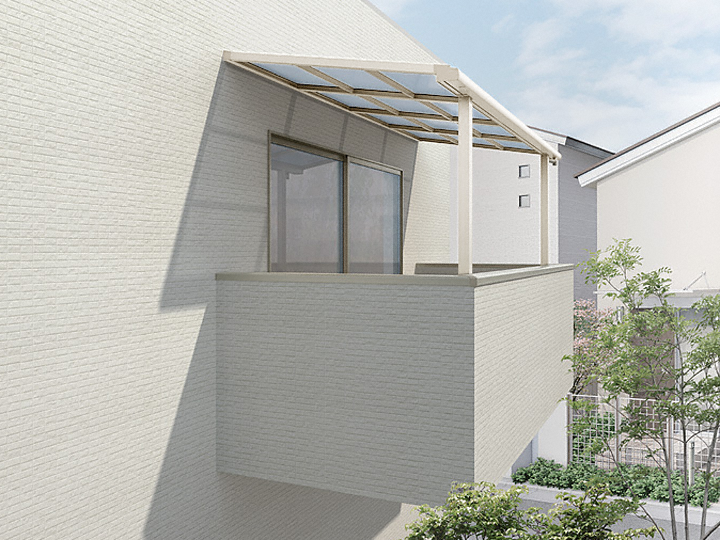 雨や雪の入り込みを防ぐことが出来ますので、突然な雨にも急ぐことがなくなります。さらに視線も遮る目隠しスクリーンも取り付けられるベランダ用の屋根です。
