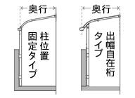 | 柱タイプ | 柱位置固定タイプ(柱3本) / 出幅自在桁タイプ(柱3本) |