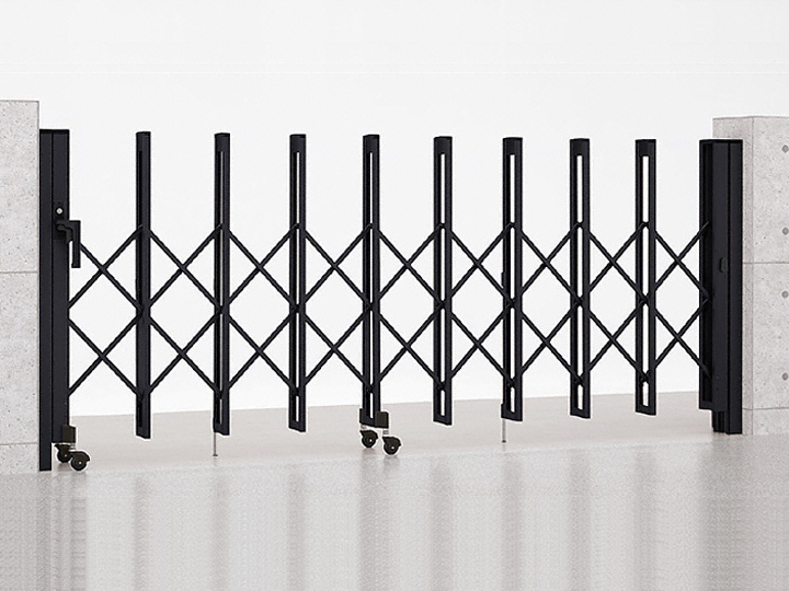 L型は桟と桟の間のクロスが大きく、隙間はゆったり300mmある両開きの伸縮カーゲートです。圧迫感を少なくし、小さな力で開け閉めができます。車・敷地の防犯性能を高めることができるお求め安い価格帯のシリーズです。