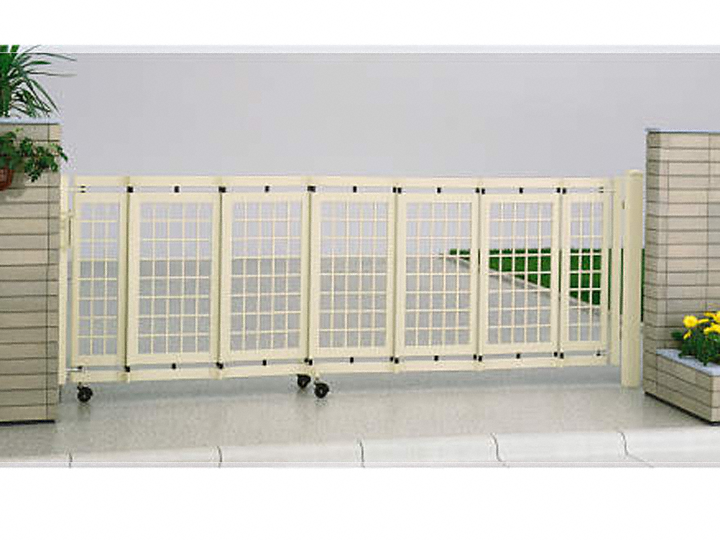 定番人気のシンプルデザイン、エクスラインシリーズの伸縮ゲートシリーズ。3型は井桁格子タイプ。180°の回転収納も可能で、すっき美しく間口をより有効に使えます。