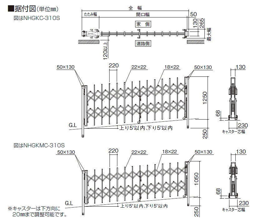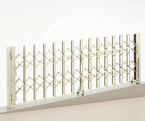 使いやすさと安定性に配慮、両開きで最大10mまで対応できる長尺タイプ。最大5°までの傾斜に対応可能なカーゲートです。両開きタイプは最大6mまでの開口を実現しました。