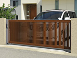 レール上を扉がスライドする車庫前の引戸です。安定した操作性で少しの力でスムーズな開閉が行えます。