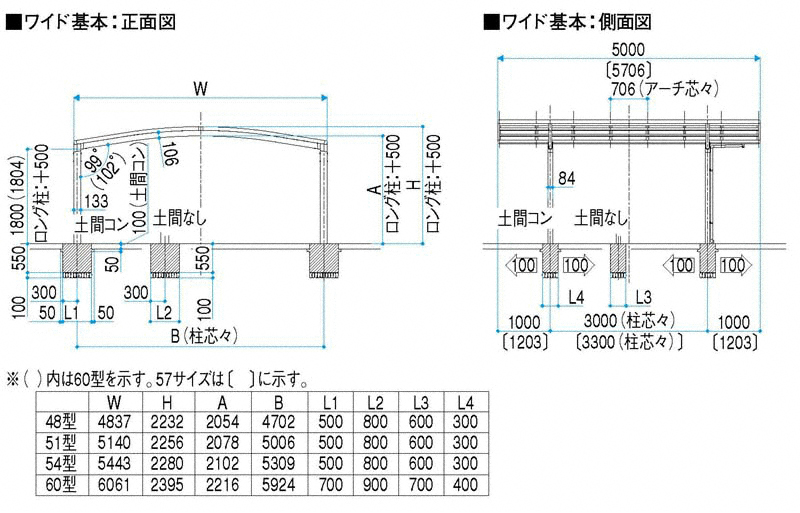 | 屋根高タイプ | 標準柱仕様(有効高 約1,800mm) / ロング柱23仕様(有効高 約2,300mm) |