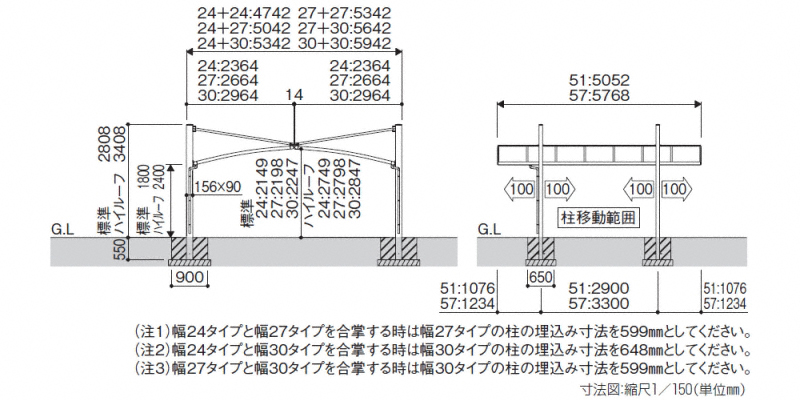 | 屋根高タイプ | 標準柱仕様(有効高 約1,800mm) / ハイルーフ柱仕様(有効高 約2,400mm) |