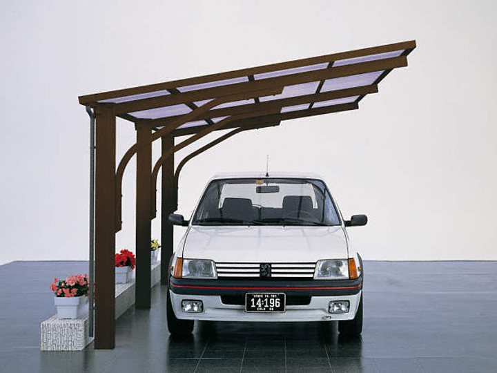 市販の波板を屋根材として使用できるカーポートです。必要に応じて屋根材の取り換えや他のカーポートにない屋根材の色を自由に選択できるのも魅力です。柱3本ですが、1本あたりが140mm×60mmと細く、間口が限られた駐車スペースにも最適です。