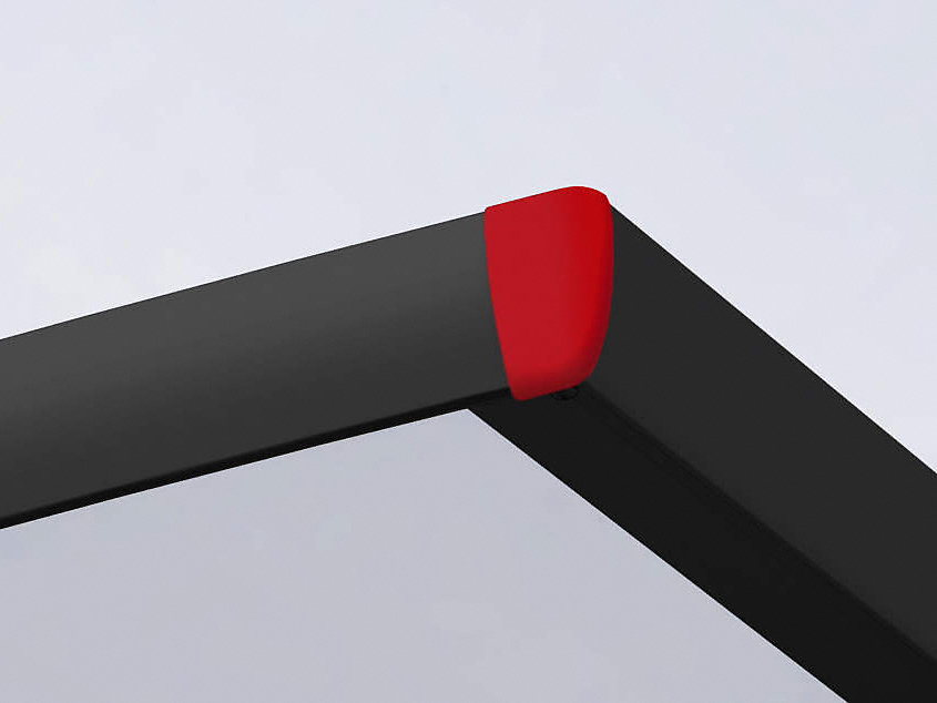 くまモンのステッカーがワンポイントのアクセントになっています。コーナー部部分のキャップはこの商品のみの赤色になっており、くまモンカラーになっています。
