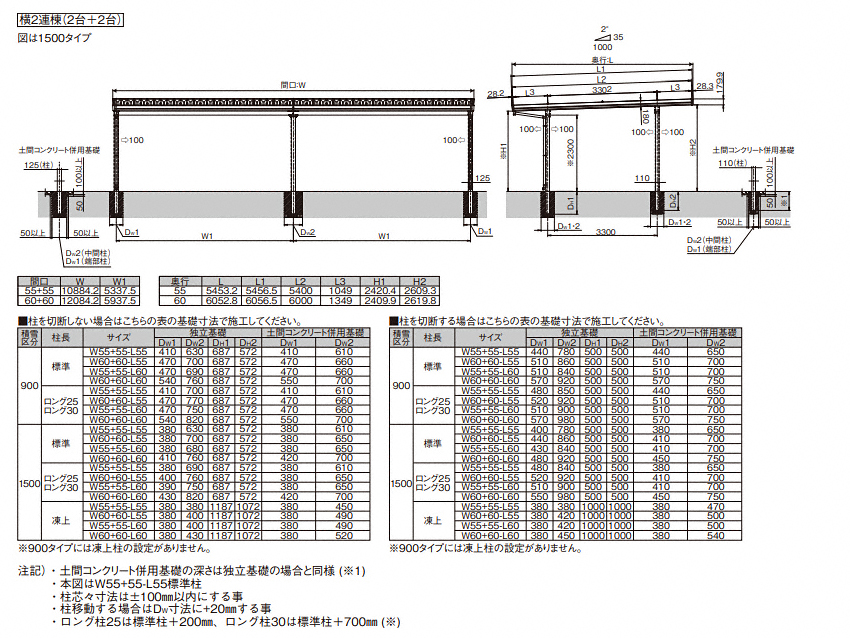 カーポートSW 積雪30cm対応 4台用 横連棟 6本柱 折板