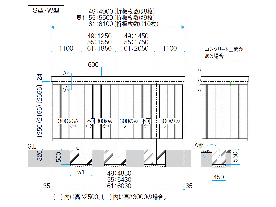 規格奥行 | 4900mm / 5500mm / 6100mm |