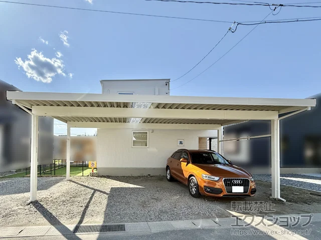 50cmの積雪にも対応するジーポートPro積雪50cm対応3台用4本柱仕様。直線の美しいフラット屋根がスタイリッシュな印象を創出します。また、車3台分の駐車スペースを確保し、広々とした開放的な車庫空間となっています。機能もデザインも大満足いただけること間違いなしです。