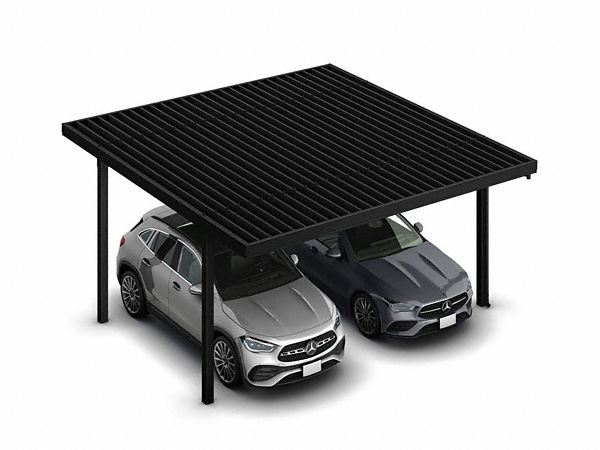 150cmの積雪にも対応するジーポートPro積雪150cm対応2台用4本柱仕様の木調色を基調としたマテリアルカラータイプ。お住まいの景観に溶け込み、ナチュラルモダンな雰囲気を創出する上質なカーポートです。洗練された高いクオリティを誇り、安定した性能を発揮します。
