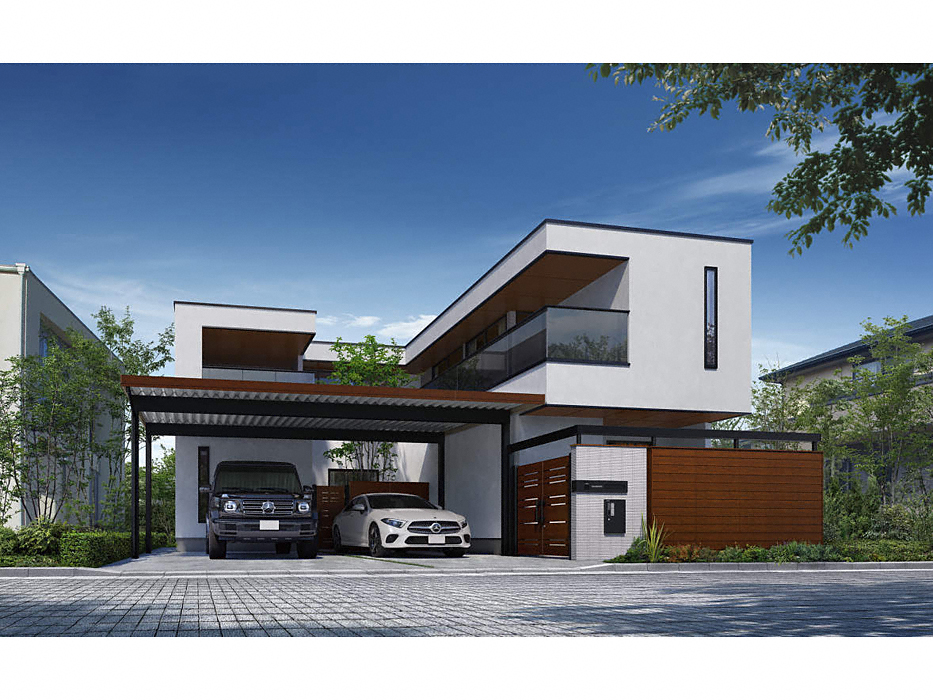 150cmの積雪にも対応するジーポートPro積雪150cm対応2台用6本柱仕様の奥行きに空間を追加した奥行延長タイプ。木調色を基調としたマテリアルカラーを採用しています。アクセントの木調カラーがお住まいの外観にマッチすること間違いなしです。