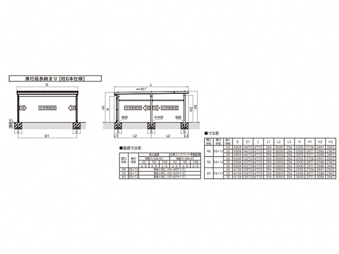 | 屋根高タイプ | 標準柱仕様(有効高 約2,350mm) / セミハイルーフ柱仕様(有効高 約2,500mm) / ハイルーフ柱仕様(有効高 約3,000mm) / 凍上柱仕様(有効高 約2,500mm) |