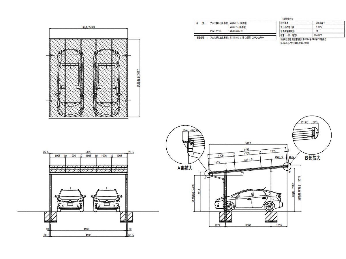 | 屋根高タイプ | 標準柱仕様 (2,400mm) |