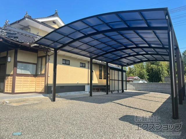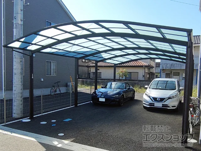 アリュース 600タイプ 縦連棟セット(4台用)は緩やかで大きなアール屋根が特徴で、安定感&存在感抜群。エクスショップでは、計4台分の駐車が可能な大きめサイズのカーポートを設置予定の方にアリュース 600タイプ 縦連棟セット(4台用)をおすすめします。