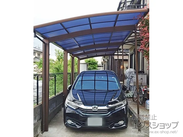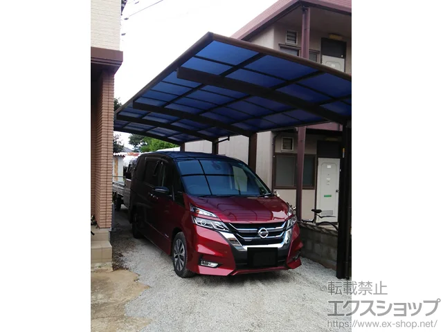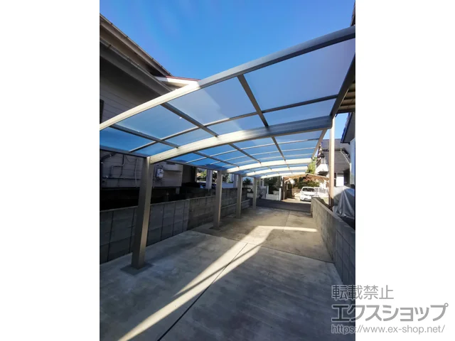 プレシオスポート アール型 縦連棟セット 2台用は車2台の縦列駐車が可能なエクスショップオリジナルブランドの奥行連結タイプのカーポートです。耐風性能は基準風速Vo=34m/s・耐積雪性能は20cm相当(600N/㎡)が備わっています。本体と屋根材の色も数種類ご用意。
