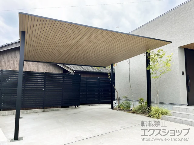 プレーンルーフ 600タイプ 2台用 単体セット 複合色はエンボス調のマットカラーと小幅板風の木調カラーを採用。エクスショップは「暮らしに溶け込むバイカラーのカーポートを設置したい!」という方にプレーンルーフ 600タイプ 2台用 単体セット 複合色をおすすめします。