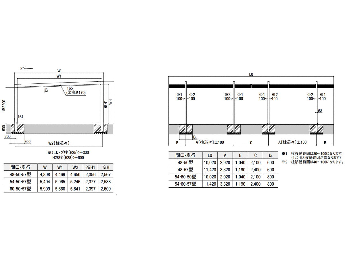 カーポートSC 2台用 縦2連棟 ダスクグレー色