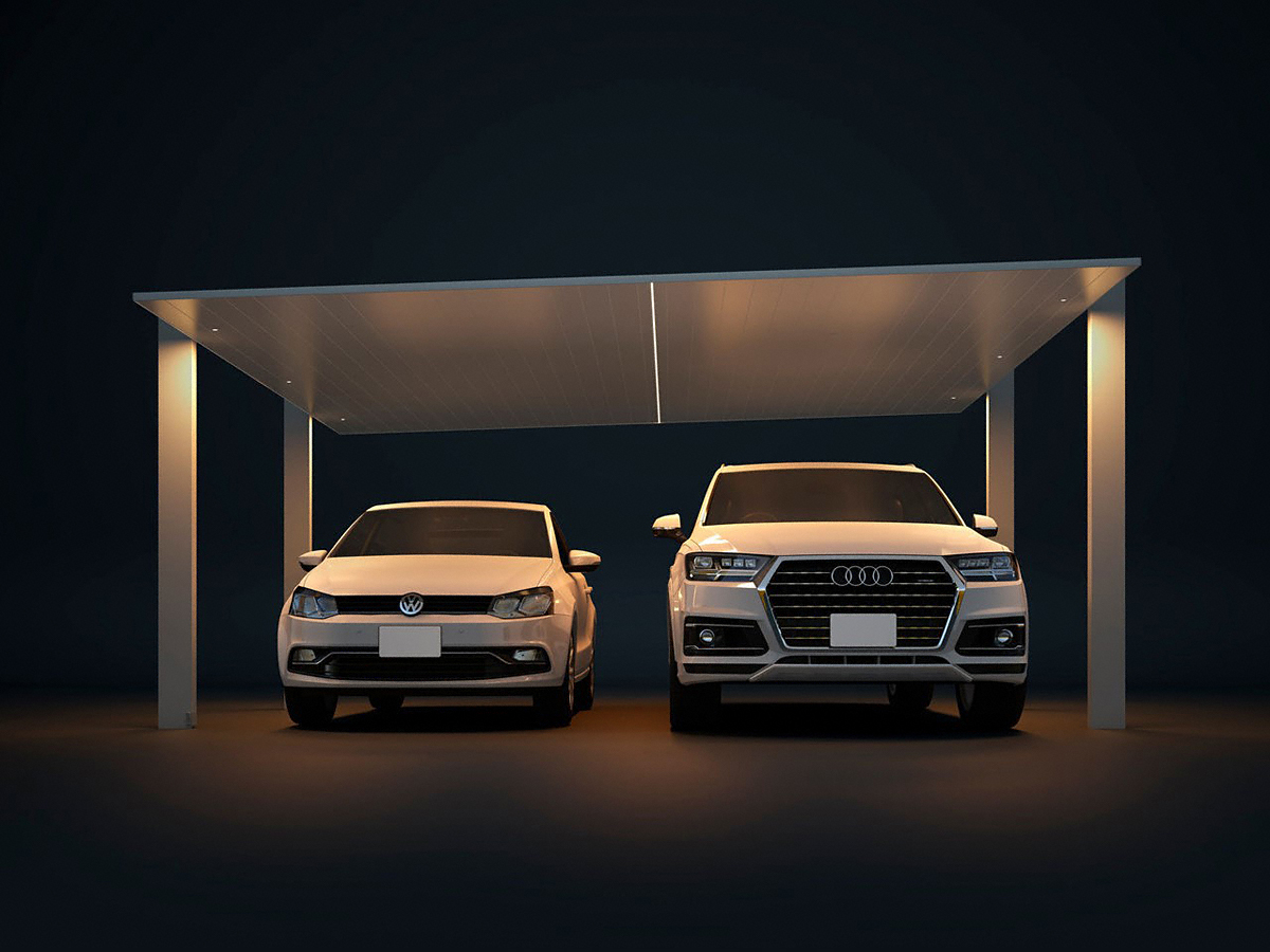 カーポートSC 1500 2台用 ダスクグレー色はマットなアルミ仕様で大人な印象に。屋根材までアルミで構成された本商品は住宅の雰囲気に新たな色合いを与えてくれます。エクスショップは「邸宅を美しく自然に彩りたい」という方にカーポートSC 1500 2台用 ダスクグレー色をおすすめします。