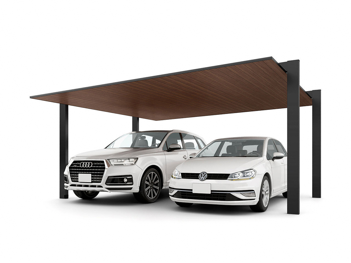 カーポートSC 1500 2台用 木調色はマットなアルミ仕様で大人な印象に。屋根材までアルミで構成された本商品は住宅の雰囲気に新たな色合いを与えてくれます。エクスショップは「邸宅を美しく自然に彩りたい」という方にカーポートSC 1500 2台用 木調色をおすすめします。