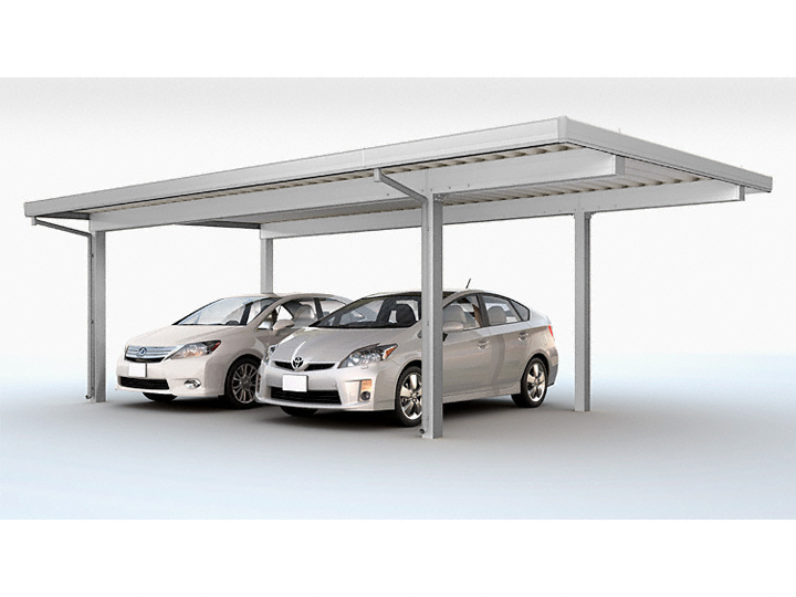 耐風圧強度に優れた折板カーポートです。通常タイプに比べ間口に1,800mm跳ねだしの余裕があるため駐輪場や作業スペース・アプローチを覆うなど活用できます。スチール屋根材なので遮光性に優れ、真夏でも車は涼しく快適で、内装の痛みを防ぎます。