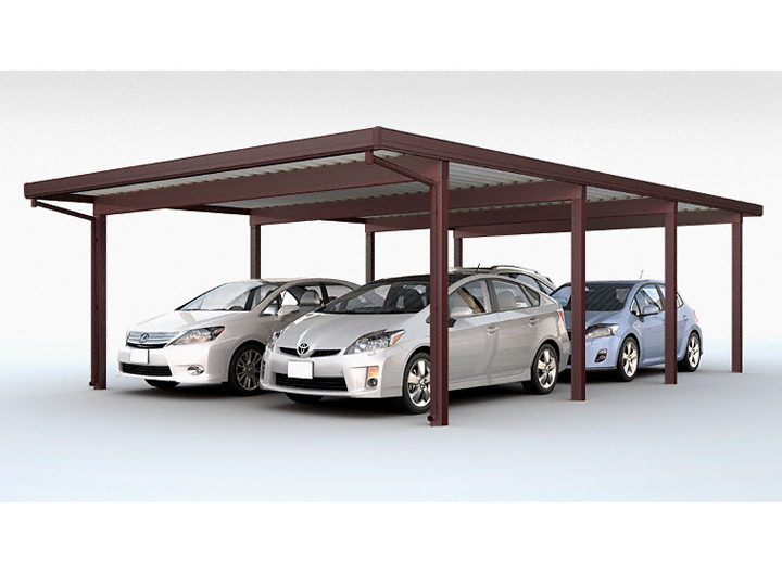 耐風圧強度が46m/s相当と沿岸部や台風の多い地域でも安心の強度を誇ります。屋根材も飛びにくいスチール屋根材で遮光性に優れ、真夏でも車は涼しく快適で、内装の痛みを防ぎます。ロング30柱を選択すれば、工場や店舗などに使える大きさです。