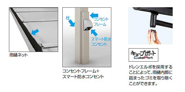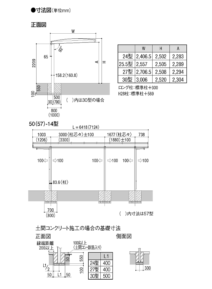 | 屋根高タイプ | 標準柱仕様(有効高 約2,200mm) / ロング柱25仕様(有効高 約2,500mm) / ロング柱28仕様(有効高 約2,800mm) |