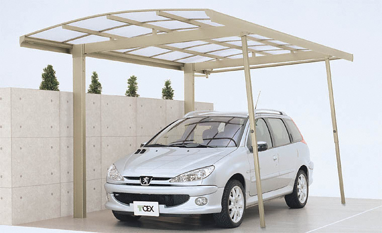 2015年8月を持って販売終了の予定です。後継カーポートの新商品「フーゴA (アーチスタイル) 縦連棟 耐雪風圧強化パッケージ」をご覧ください。 片流れ + 緩やかな半円形状 のフォルムが夜話から名印象を与えてくれます。耐風圧強度を高める専用のオプションをセットした商品です。台風が接近したときや強い風の日でもとっても安全です。