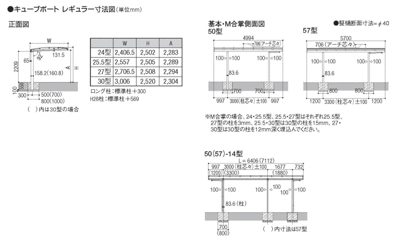 | 屋根高タイプ | 標準柱仕様(有効高 約2,200mm) / ロング柱25仕様(有効高 約2,500mm) |