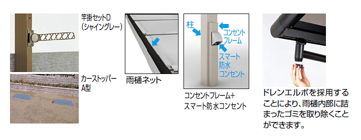 | 屋根高タイプ | 標準柱仕様(有効高 約1,800mm) / ロング柱仕様(有効高 約2,300mm) / ロング柱28仕様(有効高 約2,800mm) |