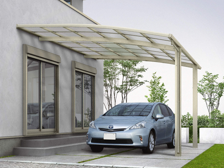 変形敷地に対応したレイナべーカシリーズ。こちらは家に密着して屋根を取り付けることで、隙間から雨が入る心配が無いことに加え、外にも雨に濡れない空間を作れる一石二鳥な役割をしてくれる商品です。まさに大きなテラス屋根です。