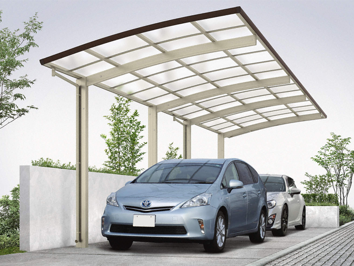 スタンダードカーポートに着脱式サポートと補強部品をセットにした商品です。性能自信はレイナポートと性能は同等で、屋根枠部分の色が木目調になったタイプです。どうしても無機質になりがちな駐車場回りを温かく木調色が包み込んでくれます。
