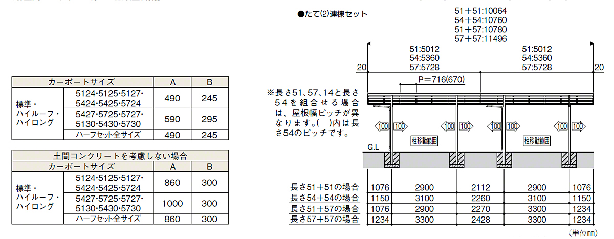 | 屋根高タイプ | ハイルーフ柱仕様(有効高 約2,350mm) |