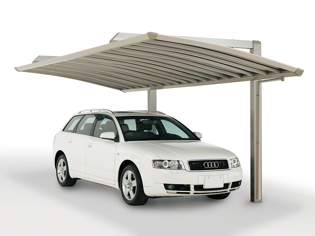 強靭な柱とカーポートの屋根吊り金具が印象的なカーポートです。ひとまわり大きなサイズ体系で、柱2本で大きな屋根を作ることができます。屋根の骨組みが多く、しっかりとした高耐久なカーポートです。