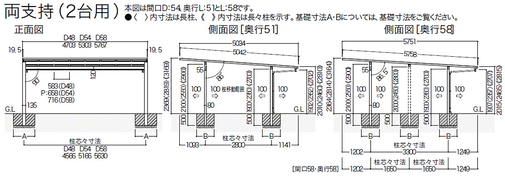 | 屋根高タイプ | 標準柱仕様(有効高 約1,900mm) / 長柱仕様(有効高 約2,350mm) / 長々柱仕様(有効高 約2,700mm) |