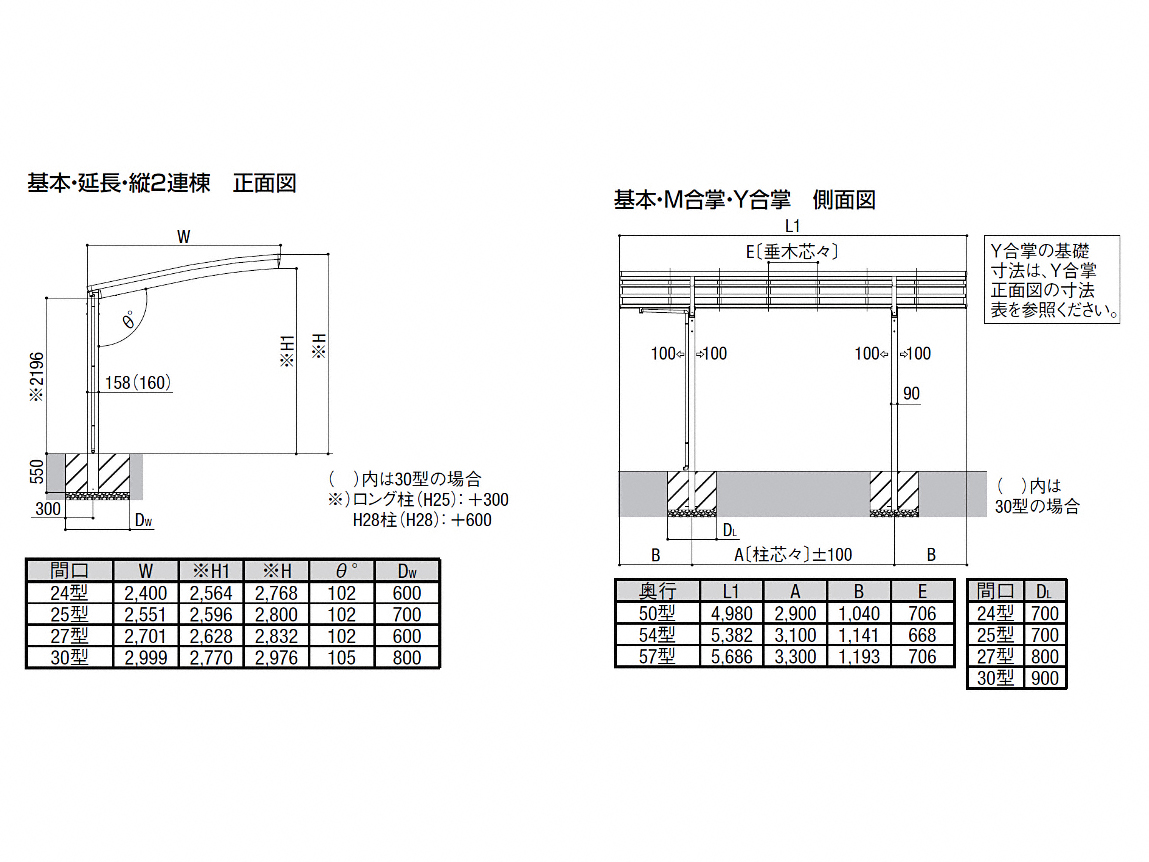 | 屋根高タイプ | 標準柱仕様(有効高 約2,200mm) / ロング柱25仕様(有効高 約2,500mm) / ロング柱28仕様(有効高 約2,800mm) |