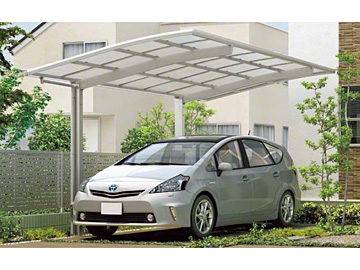 垂れ壁がついた片側支持タイプのカーポートです。柱側にアール型に垂れた屋根は横からの視線を遮り、雨の吹き込みや日光の差し込みを和らげます。また、サイズ感が通常のカーポートより約0.5台分大きい仕様となっており、デッドスペースの活用にも貢献します。| カラー |