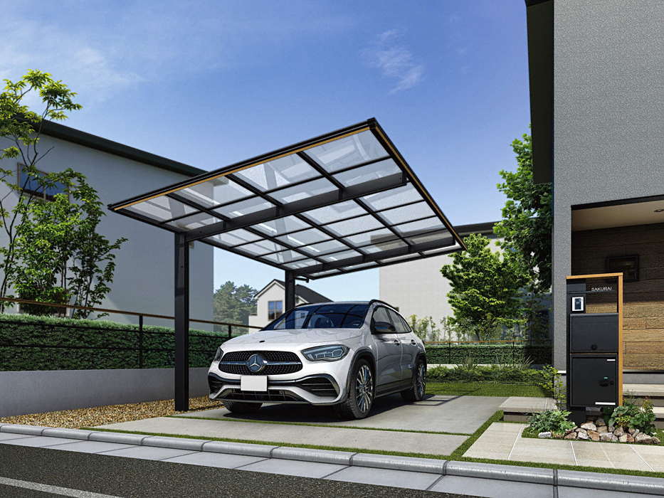 直射日光と雨から車をしっかりガード。真冬は霜を防ぎ、1年快適空間。